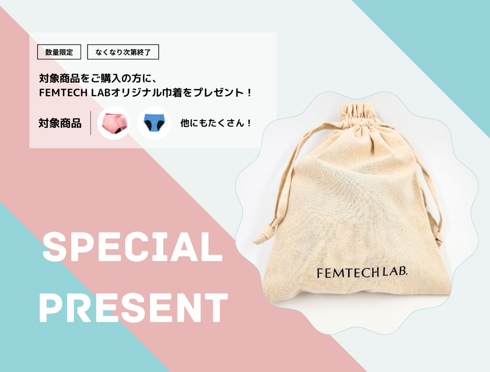 ノベルティプレゼントキャンペーンでは、対象商品のご購入で、FEMTECH LABオリジナル巾着をプレゼントしています。