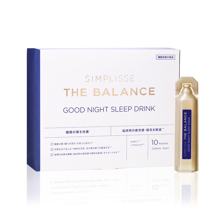 ミドル世代の女性をサポートするブランド「SIMPLISSE THE BALANCE / シンプリス ザ バランス」から、新商品「シンプリス ザ バランス グッドナイト ドリンク」が発売中です。本商品は、睡眠の質(眠りの深さ)の向上と、すっきりとした目覚めをサポートする機能性表示食品です。40代・50代の更年期女性の睡眠に関する悩みに着目し開発されました。
