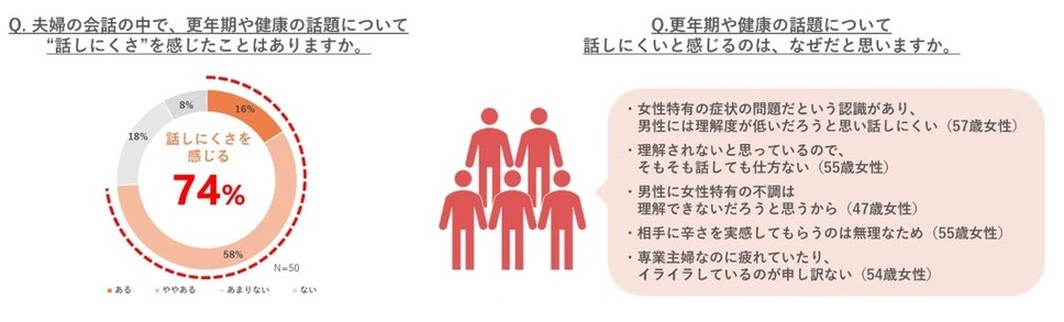 株式会社ファンケルは、更年期世代の悩みに寄り添う取り組み「FANCL MENOPAUSE ACTION」の一環として、更年期症状を有する40~50代女性とその夫の計100人を対象に「更年期に関する夫婦間の会話実態」調査を実施しました。