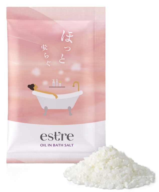 オイルインバスソルトは、忙しい日々をおくるなかで、香り×保湿の効果で心・肌・体を満たし、リラックスタイムを彩ります。幸せホルモン(オキシトシン)に着目し、古代インド発祥の美容法で使用されるハーブの一種「センシンレン」の葉をプロパンジオール(保湿剤)と水で抽出した植物エキスを配合。また、エストールブランドの無添加(合成香料不使用)を守るため、人工香料は不使用。柑橘の爽やかさと奥深く華やかな香りで深いリラックスタイムに寄り添います。